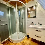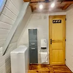Lo chalet dispone di un bagno con una vasca da bagno, un bagno con WC separato e una doccia. Inoltre, gli ospiti possono usufruire di asciugacapelli.